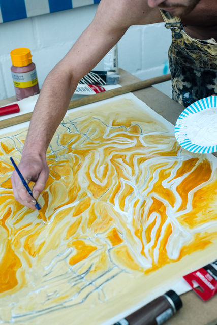 Son travail oscille entre dessin, peinture, mais également performance. C'est en effet avec la performance "Corps vocal" que Maxime exprime de son corps et à l'aide de pastel à l'huile les difficultés que peut rencontrer l'humain face à la parole et à l'expression de sa souffrance.